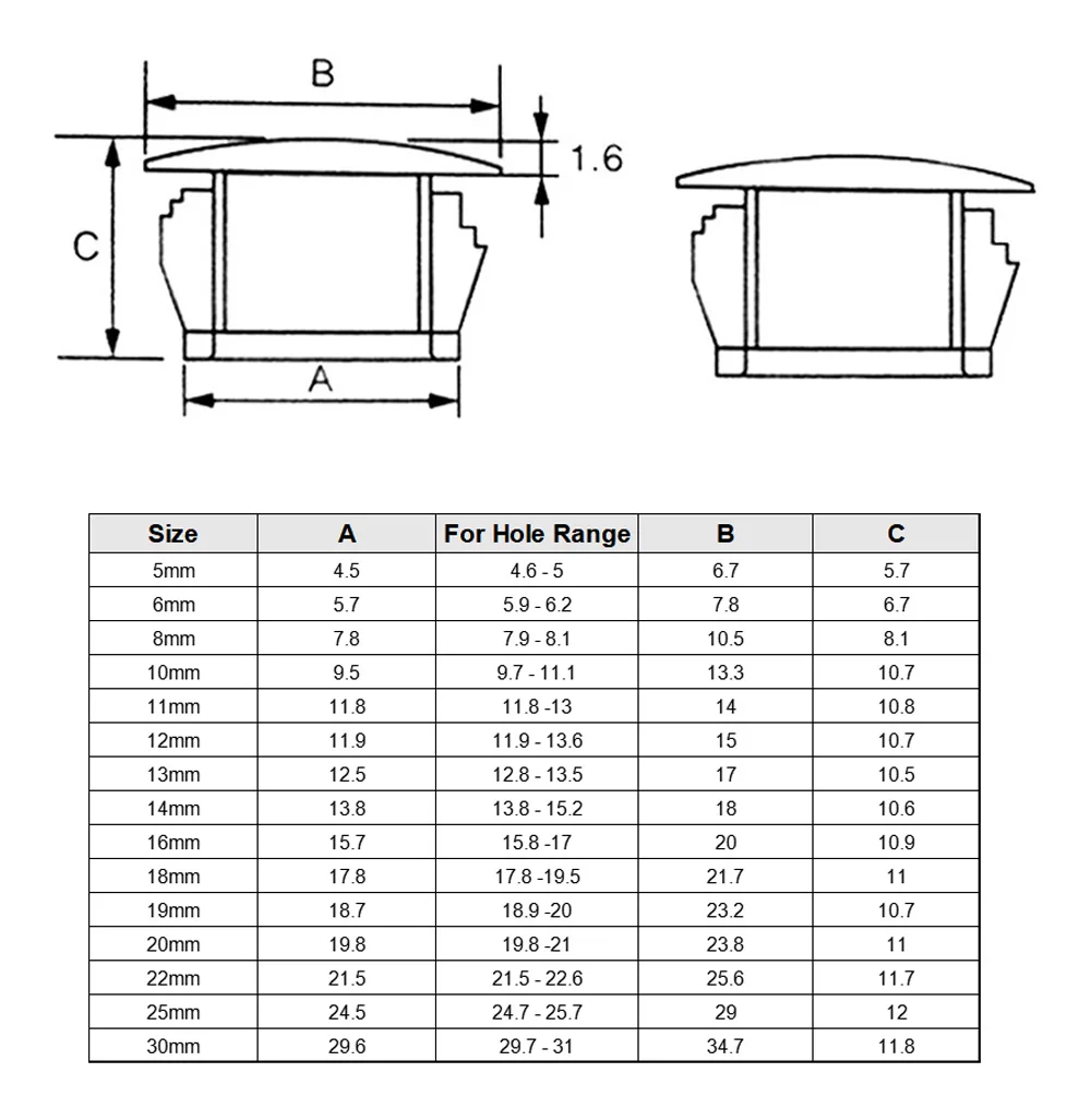 10pcs Black Round Plastic Blanking End Cap Caps Tube Pipe Inserts Plug Bung Hole Stopper 6mm 8/10/13/14/16/19/20/22/25/30mm