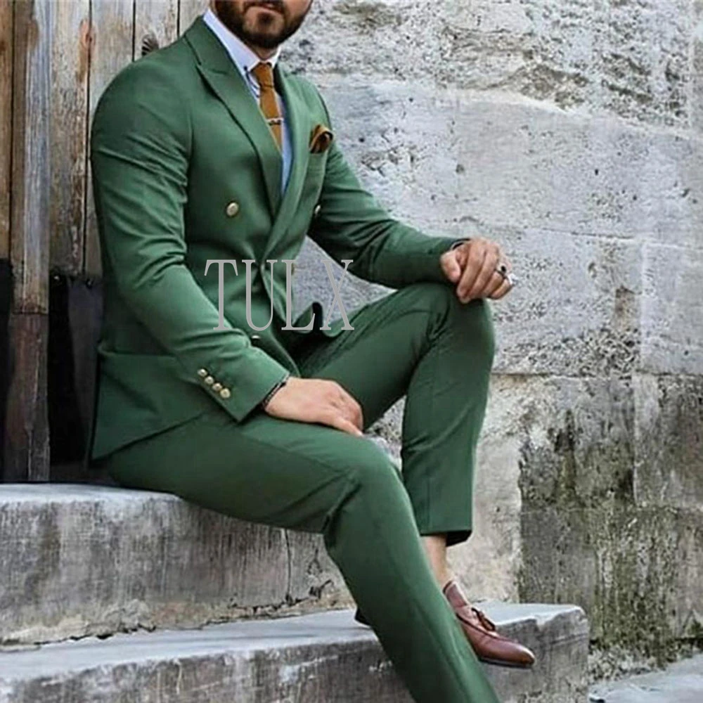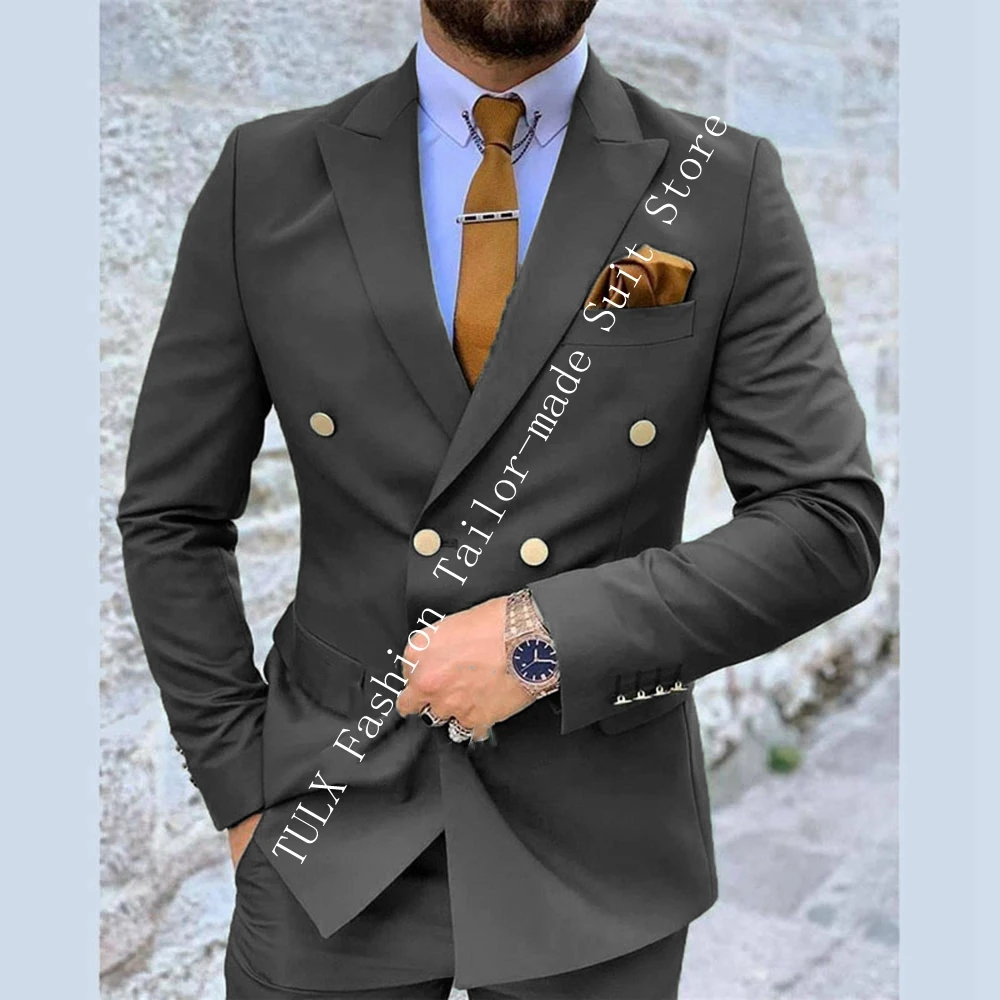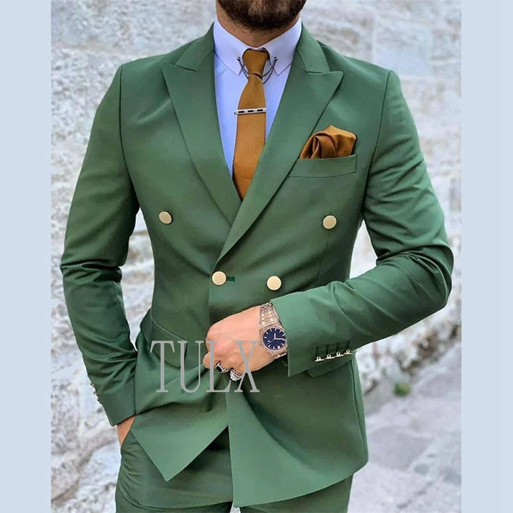 Men's Suit 2023 Peak Lapel Double Breasted Slim Fit Formal Wedding Party Suits Groomsmen Blazer Pants 2 Pieces Terno Masculino