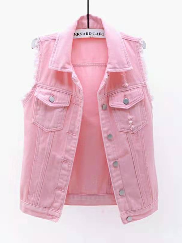 Solid Sleeveless Short Jean Coat Streetwear Female Women Single Breasted Denim Vest Autumn Winter Casual Turn-down Collar Pocket