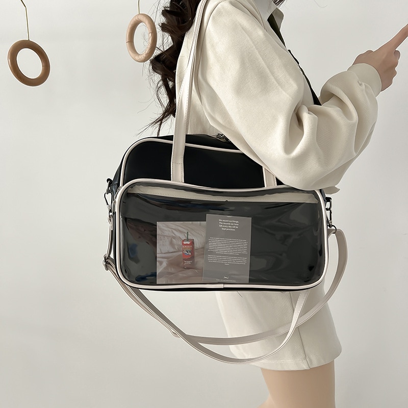 Transparent Tote Bag Women's 2023 New Soft Leather Large Capacity Single Shoulder Bag Messenger Bag Class Handbag 이타백