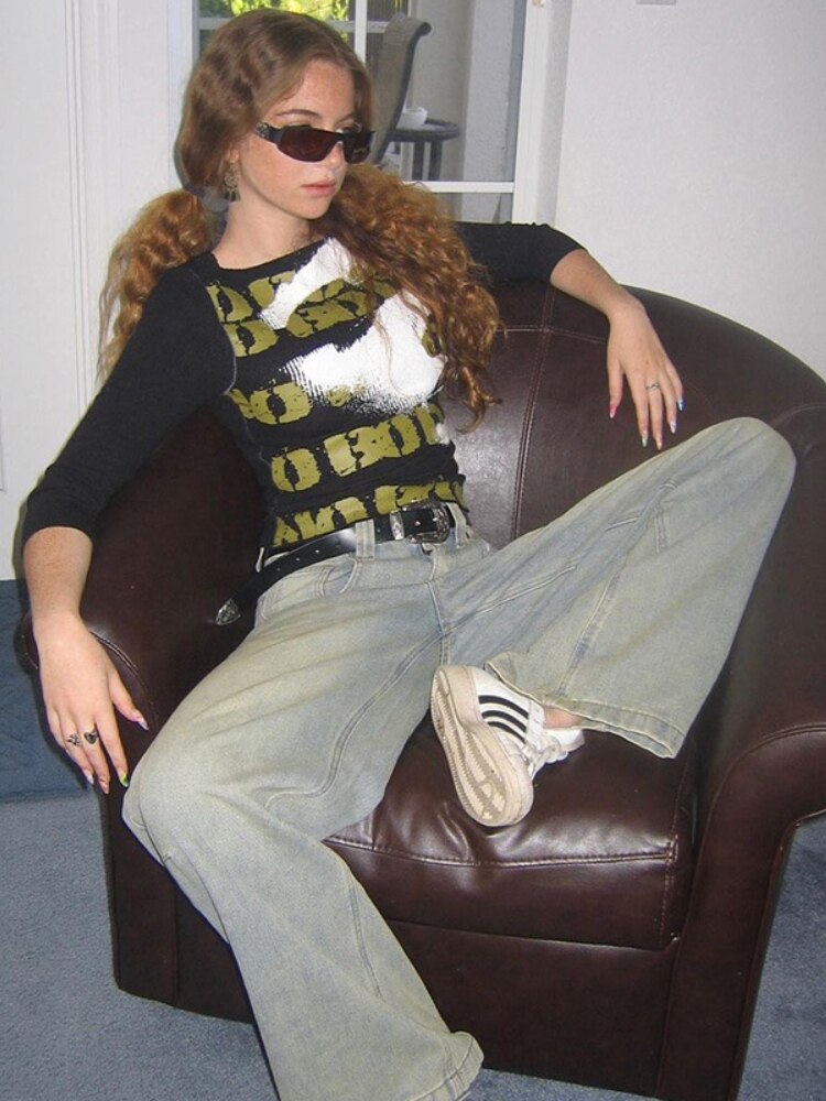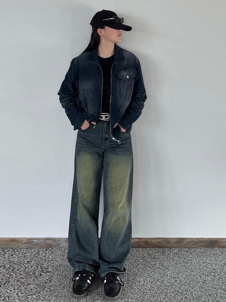 Vintage Gradient Flared Jeans Washed High Waisted Baggy Pants 2023 Korean Fashion Streetwear Wide Leg Long Denim Trousers y2k