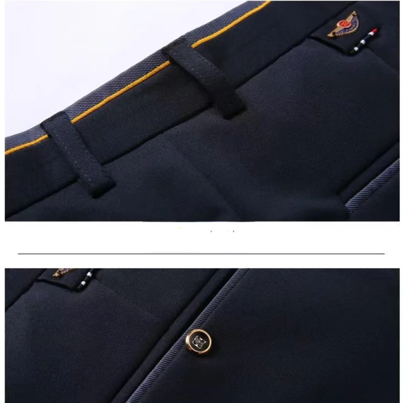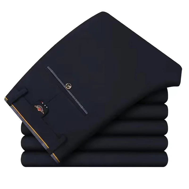 High Stretch Men's Dress Pants High Waist Elastic Formal Suit Pants Office Business Classic Casual Trousers Slim Fit Black Blue