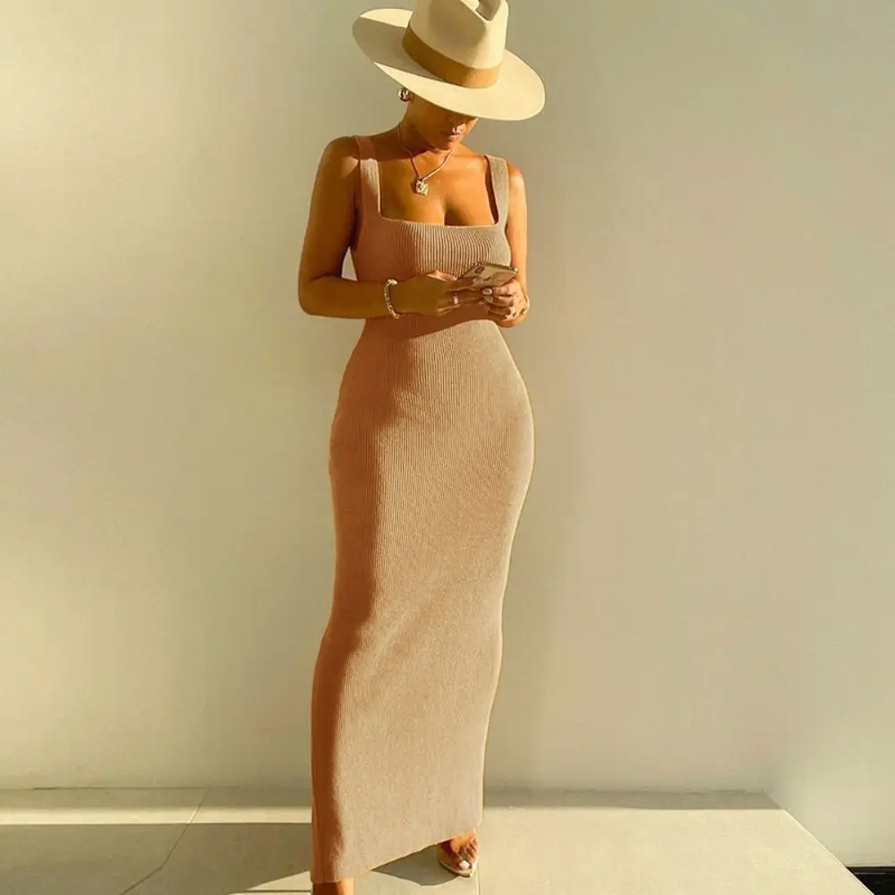 Amandina Luxe Sleeveless Square Neck Summer Dress Midi Dress