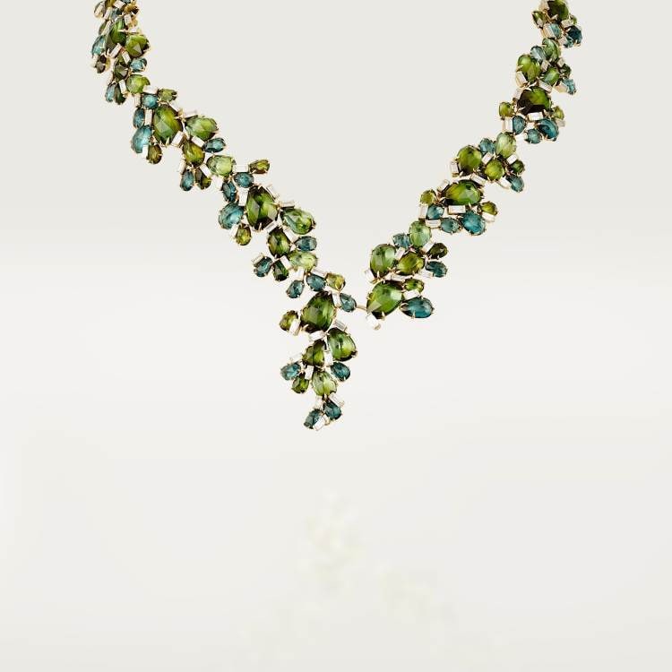 CACTUS DE CARTIER necklace, 750‰ yellow gold, set with 114 baguette-cut diamonds, total weight 9.20 carats, tourmaline.